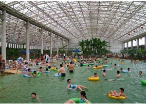 江蘇省洪澤縣老子山溫泉風景 溫泉陽光浴場展示出亮麗的南國風情,分布大型泳池和品類各異的水療、魚療、花藥浴、泥巴浴,不僅具有神奇的理療保健作用,還兼備排毒養顏、美白肌膚、調理身心等多重功效,享有蘇北熱海、澤國仙境、華東首席溫泉度假區之美譽。 |