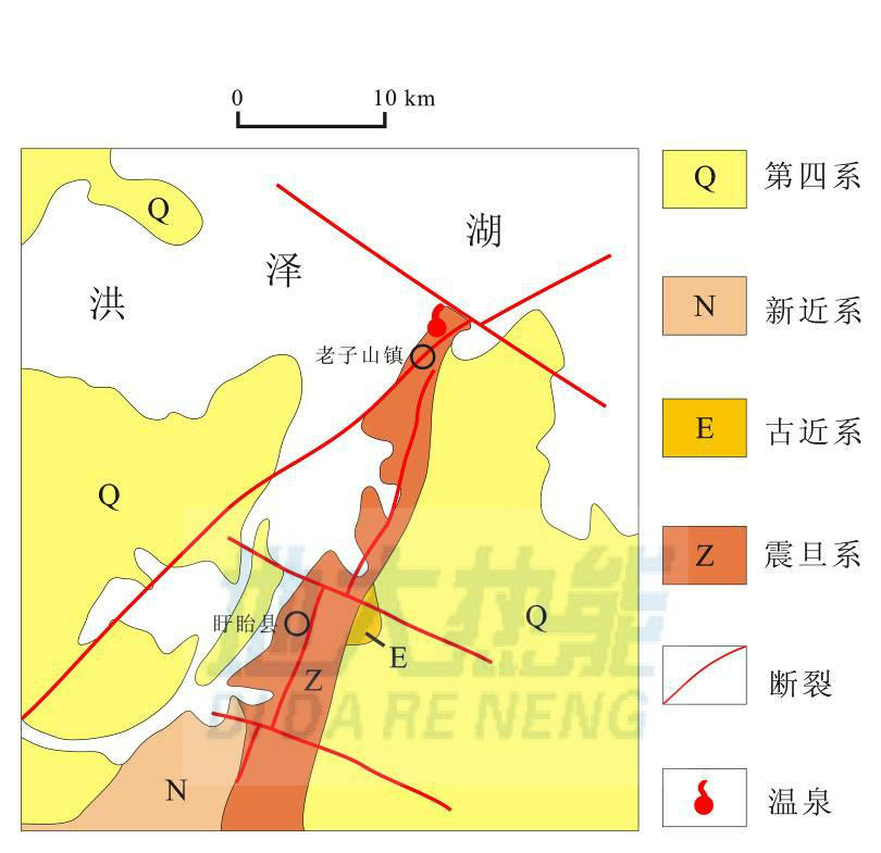 江蘇省洪澤縣老子山溫泉成礦機制![]() ![]() 江蘇省洪澤縣老子山溫泉區域地質圖 |